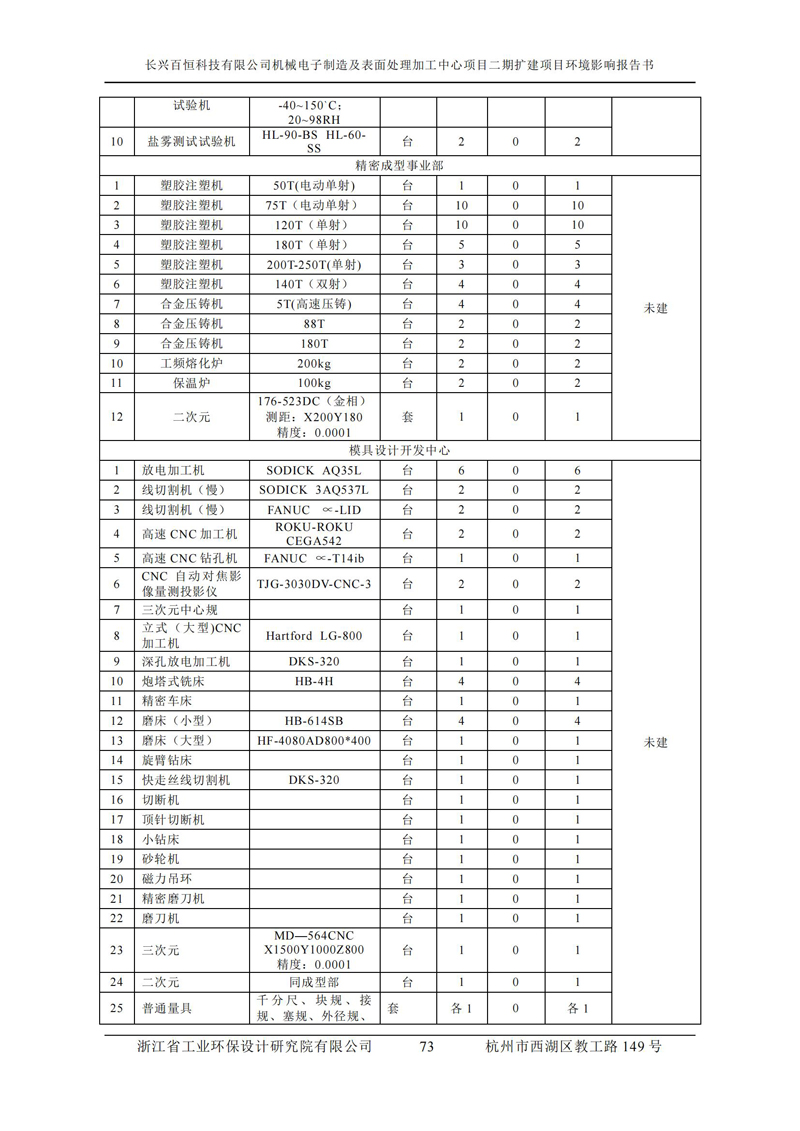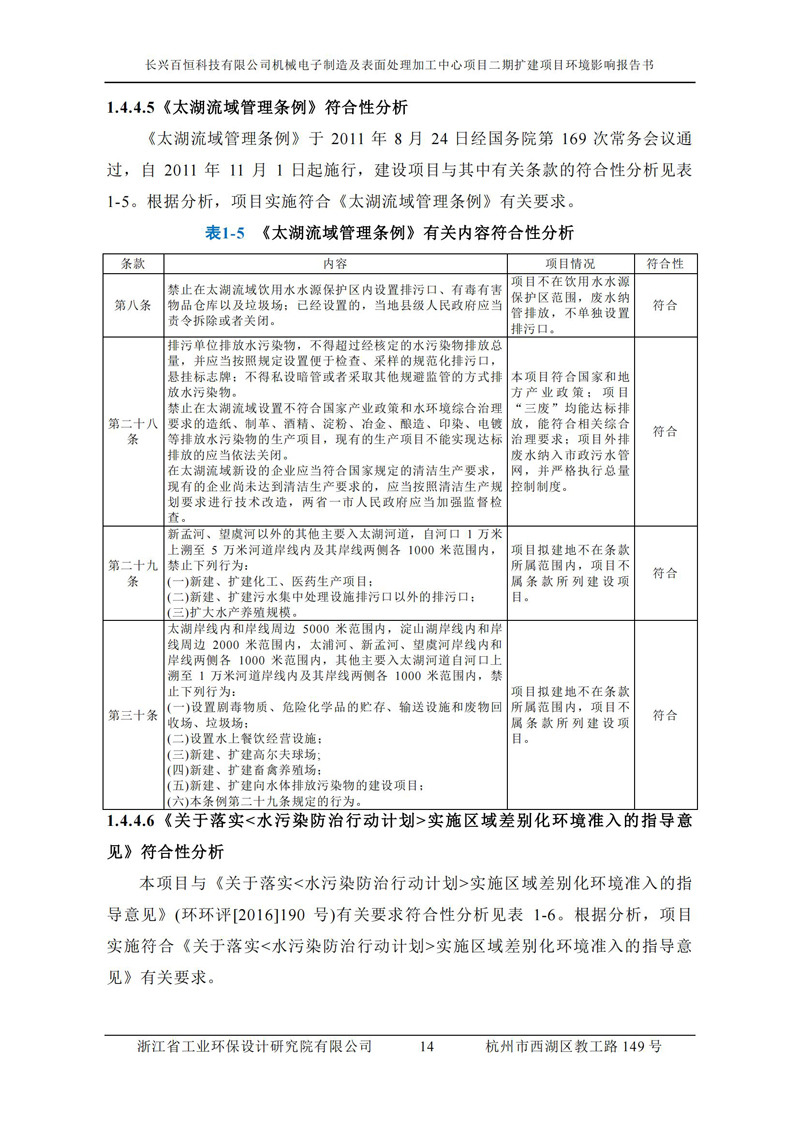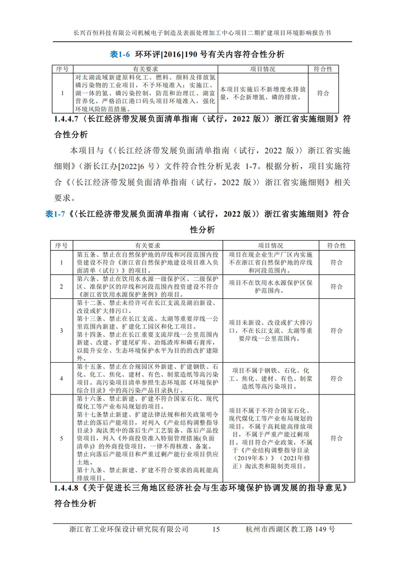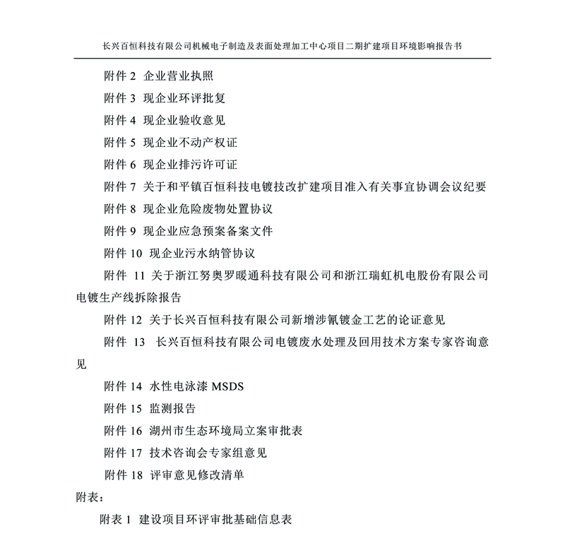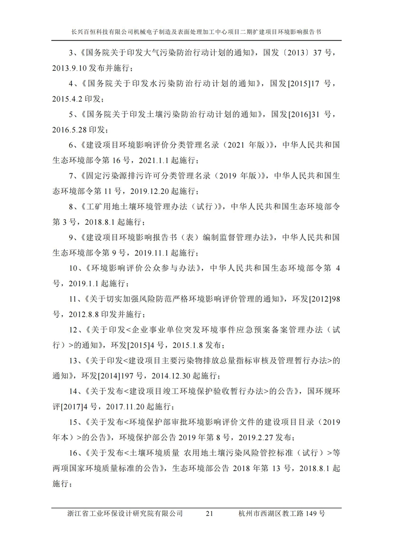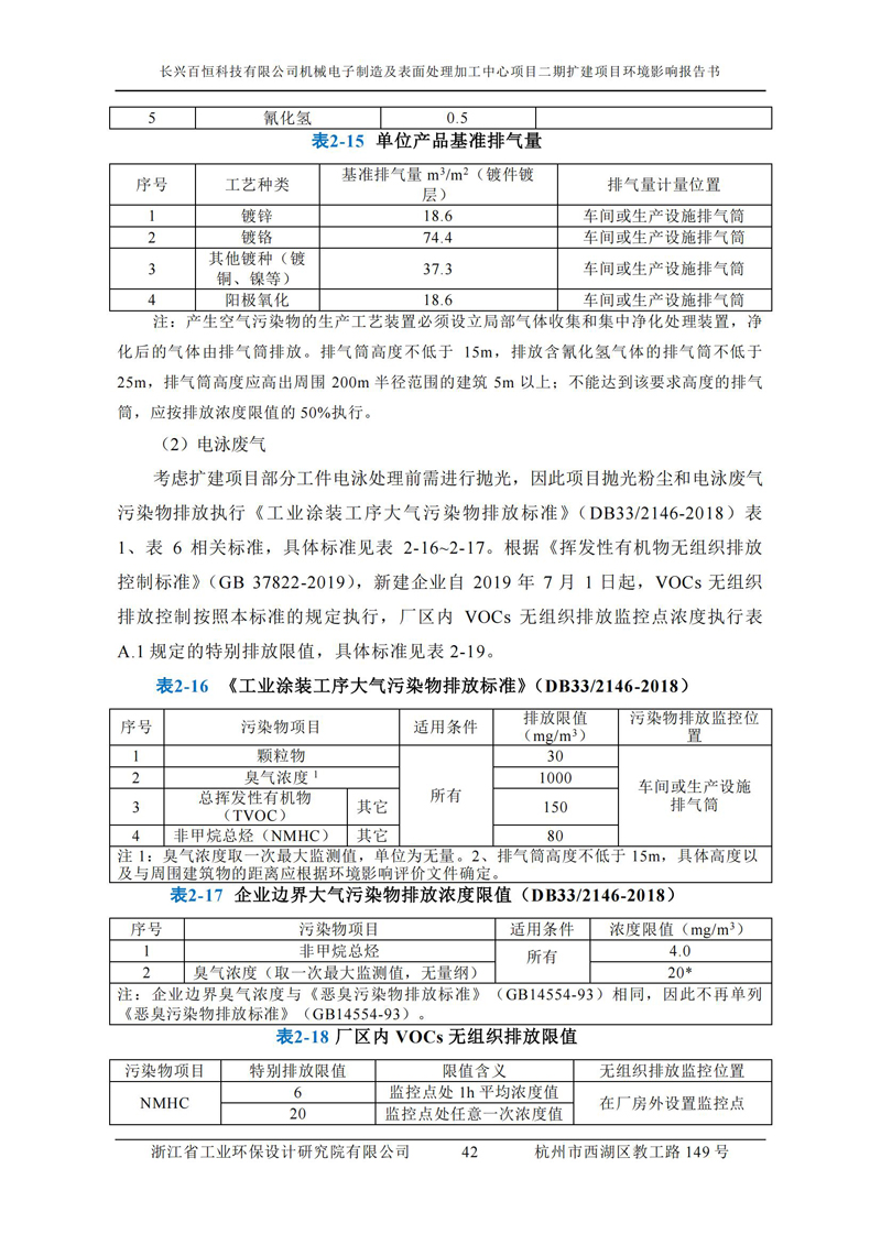 更多完整版詳情請下載文件預覽 “ 長興百恒科技有限公司機械電子制造及表面處理加工中心項目二期擴建項目 環境影響報告書 ” |